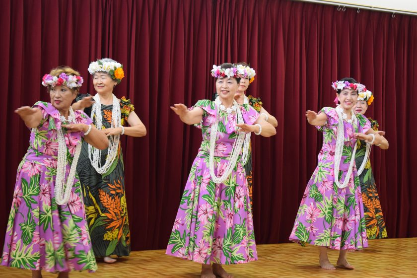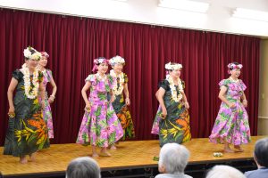 多度津地域女性部フラダンス学級 敬老慰問活動 投稿日:2025年10月7日 多度津地域女性部フラダンス学級は9月18日、多度津町の特別養護老人ホーム「桃陵苑」で「敬老慰問活動」を行いました。 この活動は、公益社団法人「小さな親切」運動多度津支部の主催により、年1回開催されています。今回はコロナ禍以降6年ぶりの開催ではありましたが、会場には大勢の入所者が集まりました。 多度津地域女性部フラダンス学級はトップバッターで出場、優雅な踊りと華やかな衣装で入居者らの目を楽しませました。
