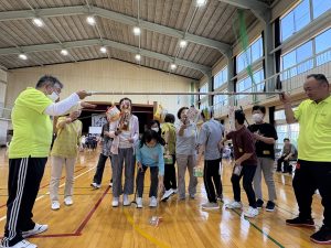 大内地域女性部 ミニ運動会開催 投稿日:2025年10月31日 大内地域女性部は10月17日、東かがわ市三本松コミュニティセンター体育館でミニ運動会を開き、部員76人が参加しました。部員の健康づくりと親睦を深めることが目的で同女性部の恒例行事。東かがわ統括店と誉水支店、大内丹生支店の職員も参加し、部員と親睦を深め競技を楽しみました。 「担架で救出」や「玉入れ」など4種の競技を行いました。競技後に恒例のジャンケン大会やくじ引きも行われ、会場は笑顔と笑い声に包まれました。
