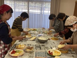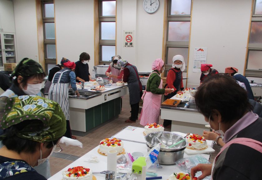 東讃地域女性部 クリスマスケーキ作り 投稿日:2026年1月9日 東讃地域女性部は12月22日~24日、各支部でクリスマスケーキ作りを行いました。部員に人気の恒例行事として毎年行っており、今回は部員102人が出席しました。 この日は、用意したスポンジケーキに生クリームを塗って、イチゴやキウイフルーツなどの果物を自由に盛り付けました。部員らは自由な発想で楽しくデコレーション。約1時間でおいしそうなクリスマスケーキができあがりました。