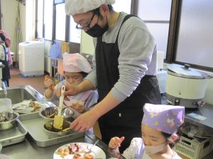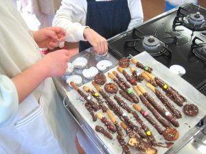 協栄地域女性部の親子料理教室 投稿日:2026年3月5日 協栄地域女性部は2月14日、まんのう町の吉野公民館で「親子料理教室」を開きました。講師に文化指導員の古河るり子さんを迎え、大人9人、子供13人の計22人が参加。バレンタインデーにちなんでチョコレートを使ったクッキーを親子で楽しく作りました。 参加した子供たちは「クッキーをまっすぐに長く焼くのが難しかった」、「チョコレートをトッピングするのが楽しかった」などと話しました。