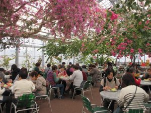 その後訪れた西島園芸団地で天井一面に咲き乱れる色とりどりのブーゲンビリアの下で、園地のハウスで育てたメロンとスイカを堪能。様々な体験やおいしい食べ物、美しい風景に刺激を受け、大満足の一日となりました。