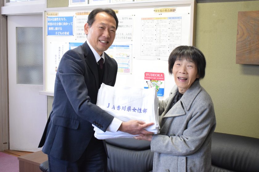 善通寺地域女性部筆岡支部と吉原支部が雑巾を寄贈 投稿日:2026年3月25日 善通寺地域女性部筆岡支部と吉原支部は、地域貢献・活性化の取り組みとして管内の小学校2校(善通寺市立筆岡小学校、善通寺市立吉原小学校)に手作りの雑巾をそれぞれ約40枚寄贈しました。 雑巾を受け取った同市立筆岡小学校の校長は「毎年しっかりと縫われた雑巾を頂きありがとうございます。新年度はこの新しい雑巾を使って気持ちも新たに頑張りたいと思います」と話しました。