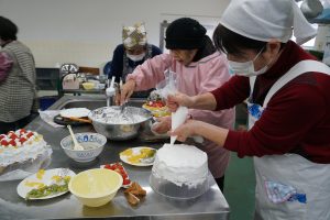 大川北部地域女性部・四国大川地域女性部 クリスマスケーキ作り 投稿日:2023年2月6日 大川北部地域女性部津田支部、鴨部支部、志度支部と四国大川地域女性部富田支部の計4支部は12月23日、各会場でクリスマスケーキづくりを行いました。 各支部とも、泡立てた生クリームをスポンジに塗り、イチゴや黄桃、キウイフルーツでデコレーションしました。イチゴのサンタクロースを飾ったものやマスカットを並べた豪華なものなど、さまざまなケーキに仕上がりました。 参加者は「一人で作るよりみんなでわいわいと作った方が楽しい」「孫と食べるのが楽しみ」とにこやかに語りました。