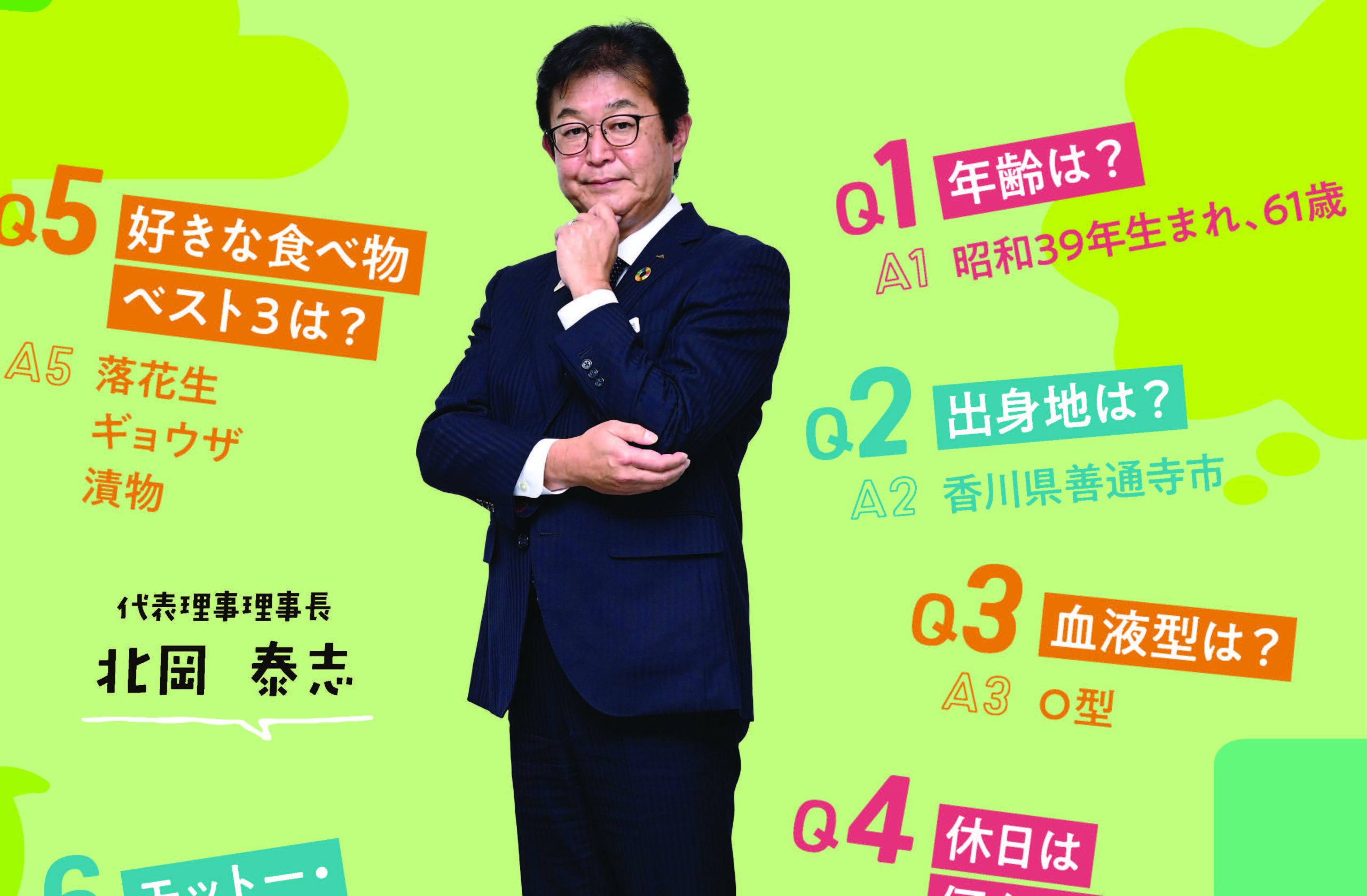 令和7年に理事長に就任した北岡泰志氏。今、何を見つめているのか。その想いや素顔に触れるため、”20の質問”を通して、理事長の考えや人柄をひもといていきます。