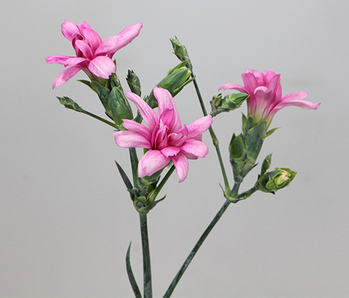 香川県で育成した「ミニティアラ」は剣咲きタイプのスプレーカーネーションで花の形がティアラを思わせ、花が小さく可愛らしいのが特徴です。現在、6品種が品種登録されています。